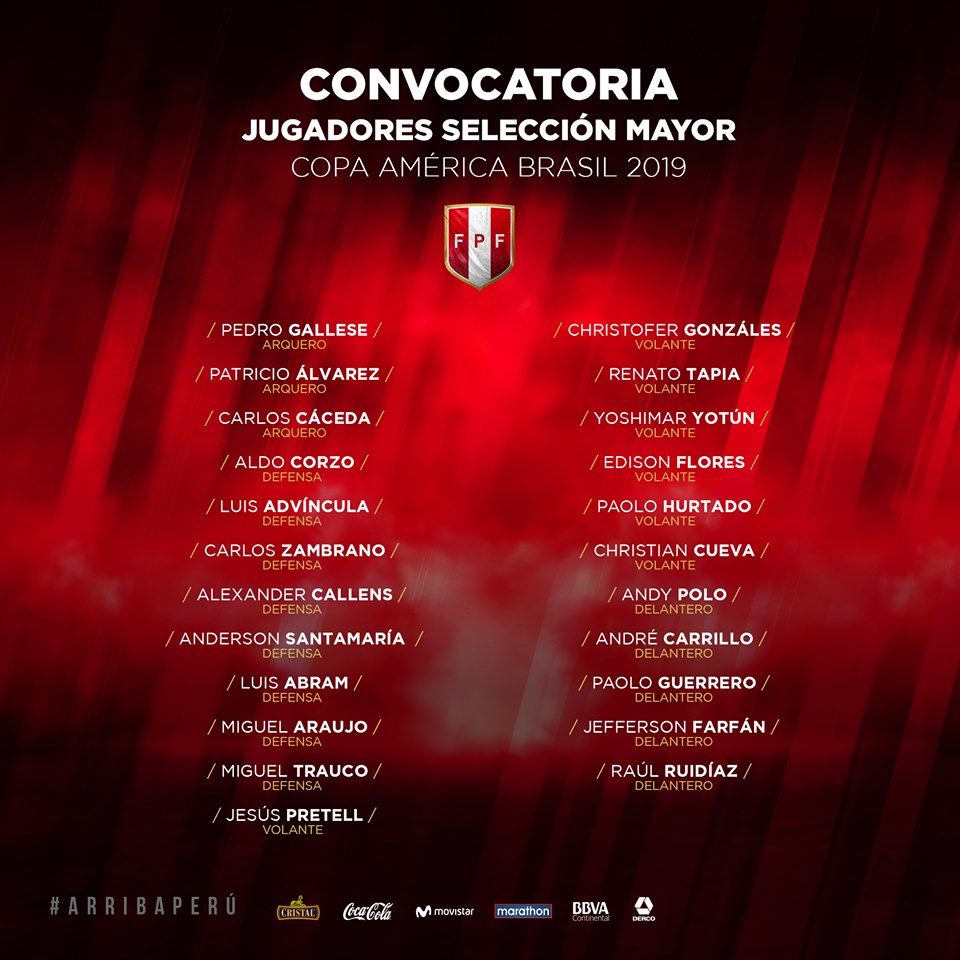 El técnico Ricardo Gareca presento lista definitiva de los jugadores que representaran a Perú en el Torneo más importante del continente.
